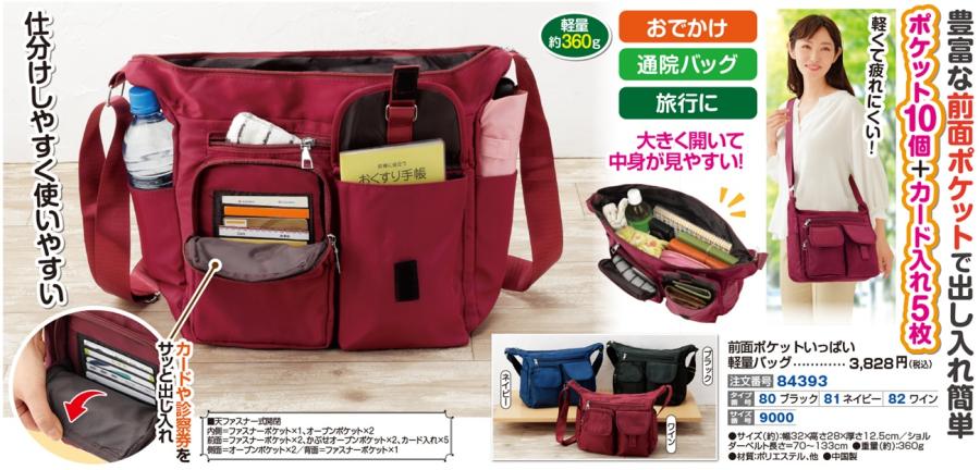 前面ポケットいっぱい軽量バッグ