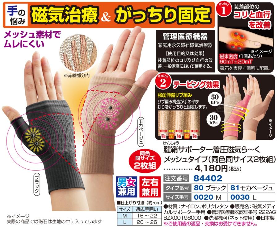 腱鞘サポーター着圧磁気らーく メッシュタイプ(同色同サイズ2枚組)