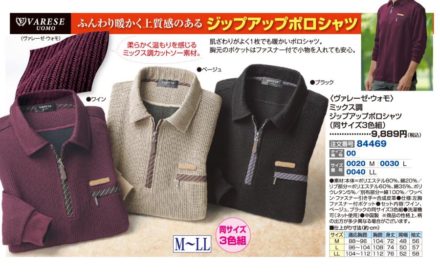 〈ヴァレーゼ・ウォモ〉ミックス調ジップアップポロシャツ(同サイズ3色組)