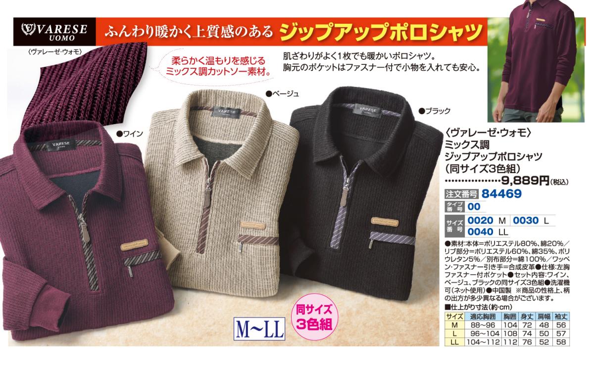 3. 〈ヴァレーゼ・ウォモ〉ミックス調ジップアップポロシャツ(同サイズ3色組)