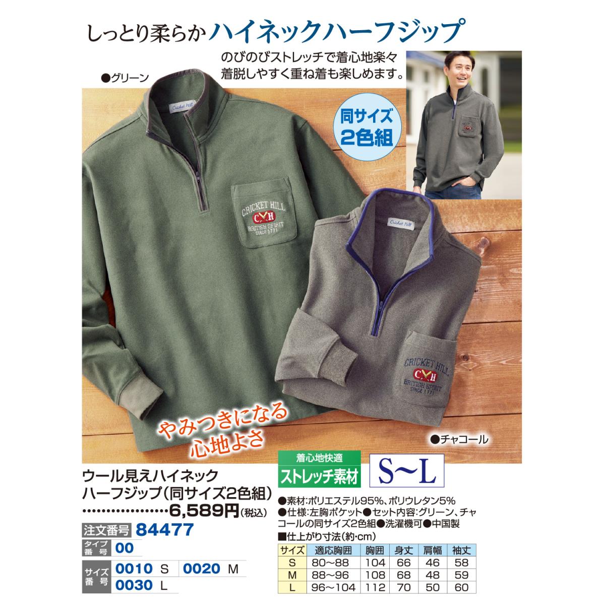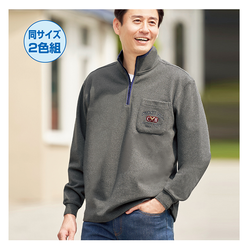 ウール見えハイネックハーフジップ(同サイズ2色組)