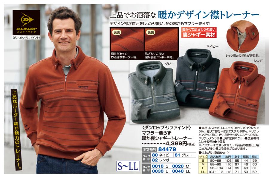 3. 〈ダンロップ・リファインド〉マフラー要らず暖か裏シャギートレーナー