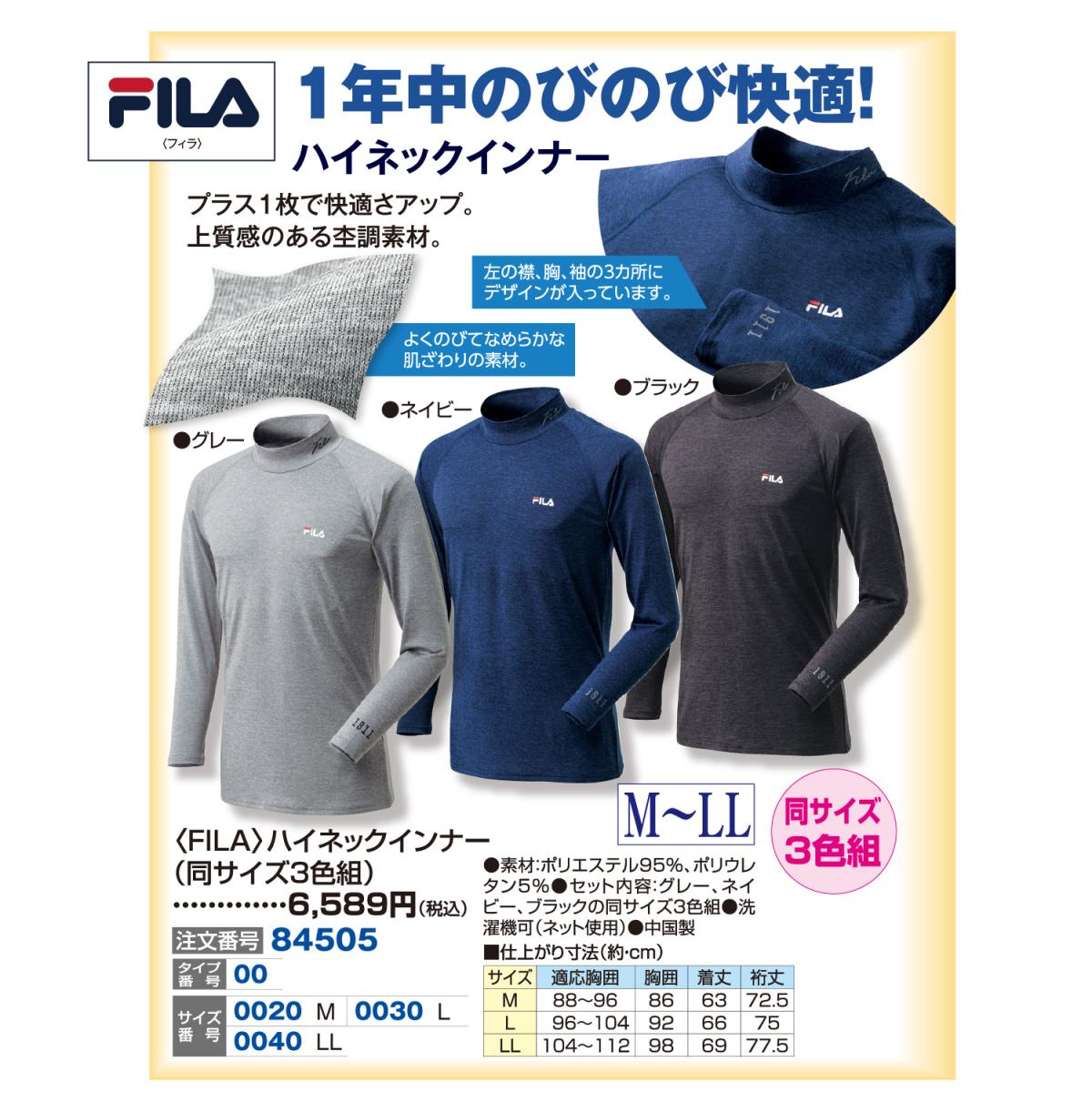 〈FILA〉ハイネックインナー(同サイズ3色組)