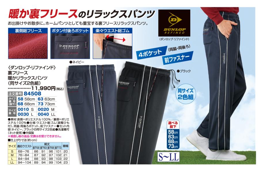 3. 〈ダンロップ・リファインド〉裏フリース暖かリラックスパンツ(同サイズ2色組)