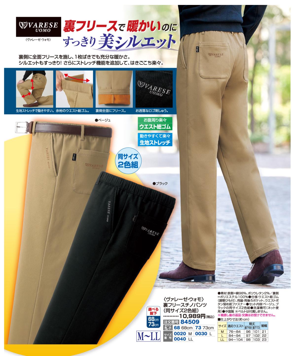 3. 〈ヴァレーゼ・ウォモ〉裏フリースチノパンツ(同サイズ2色組)
