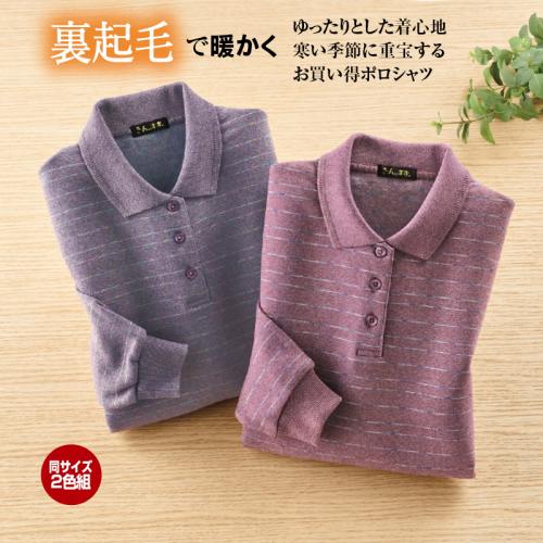 裏起毛のあったかボーダーポロシャツ(同サイズ2色組)