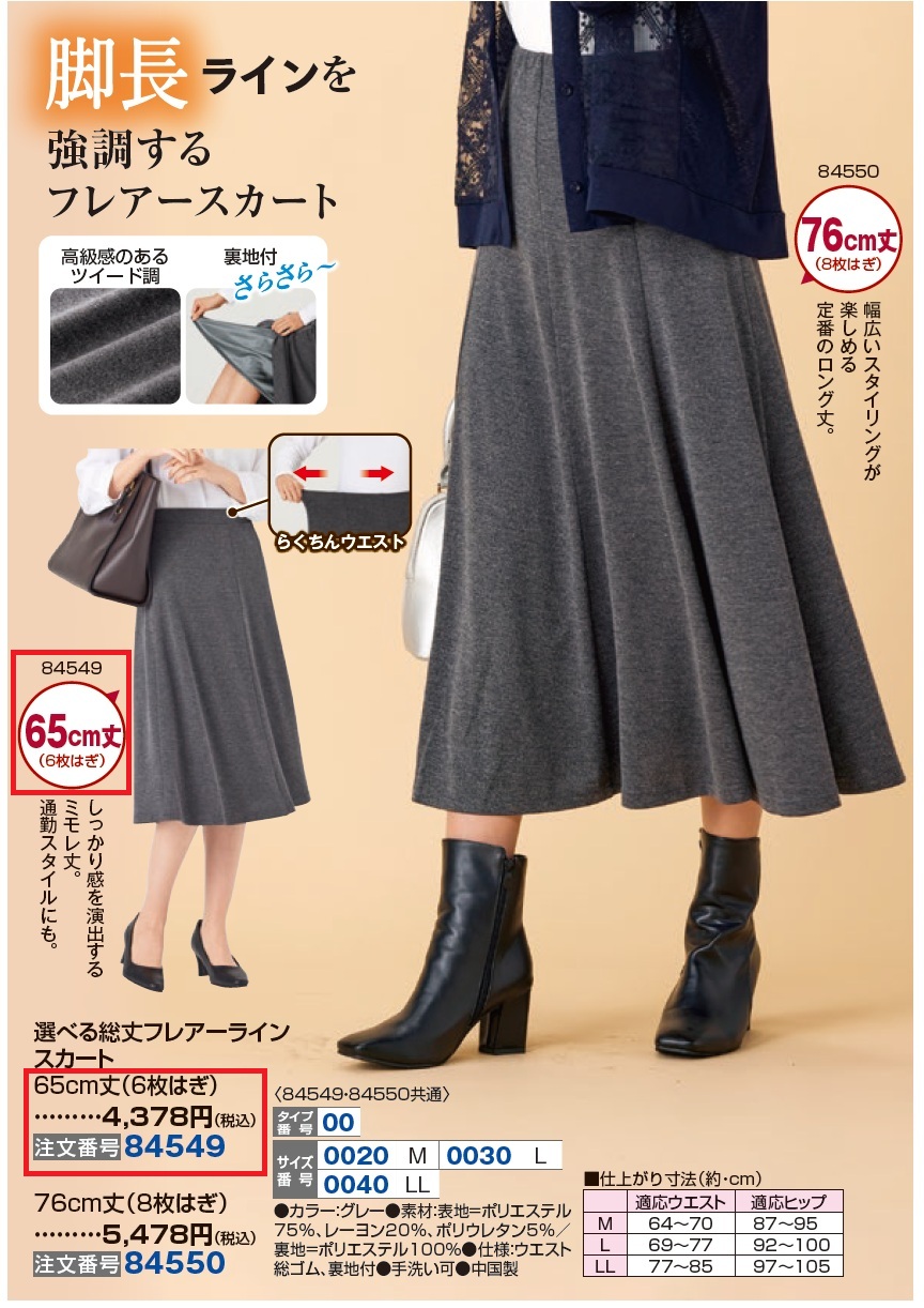 3. 選べる総丈フレアーラインスカート 65cm丈(6枚はぎ)
