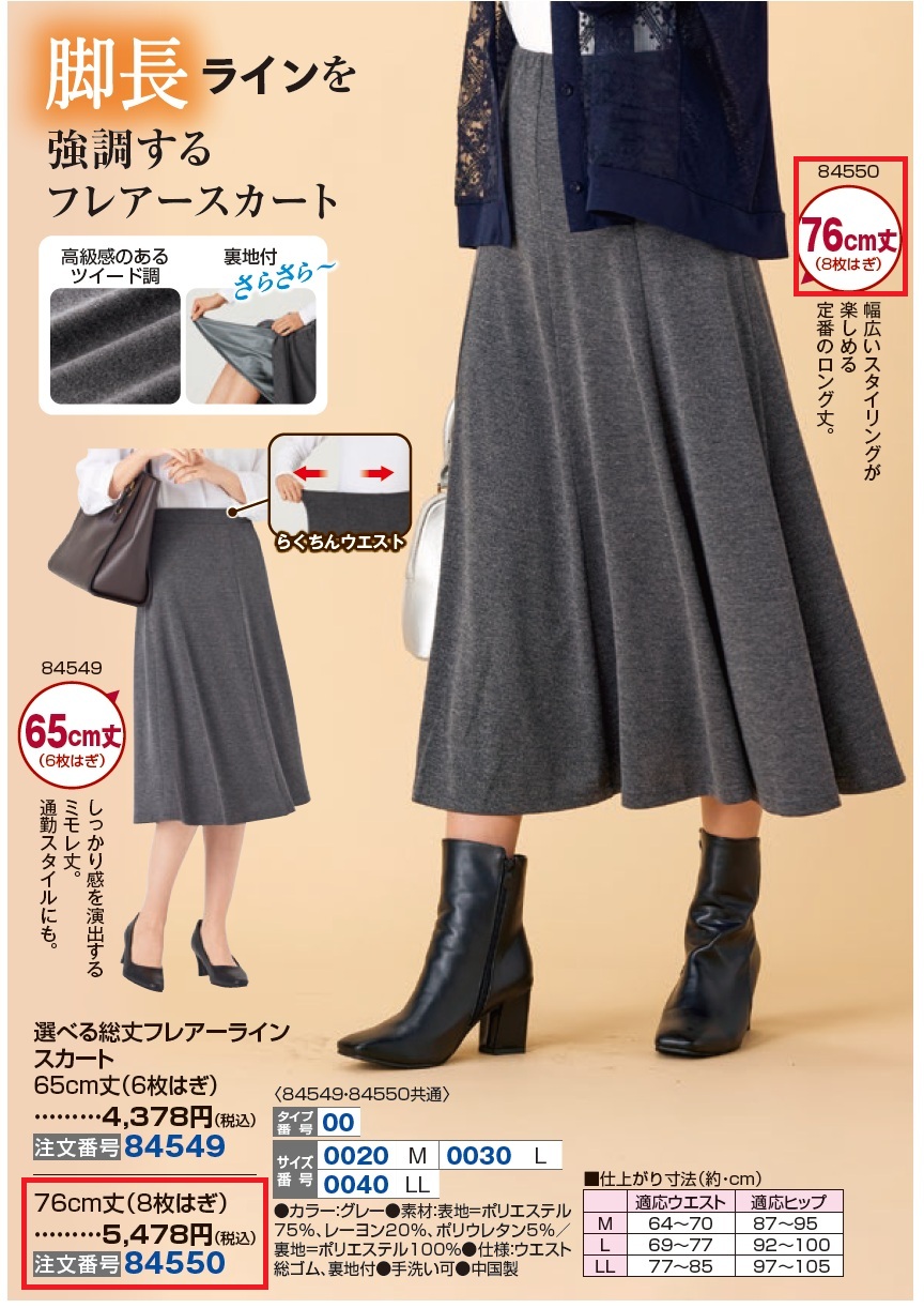 3. 選べる総丈フレアーラインスカート 76cm丈(8枚はぎ)