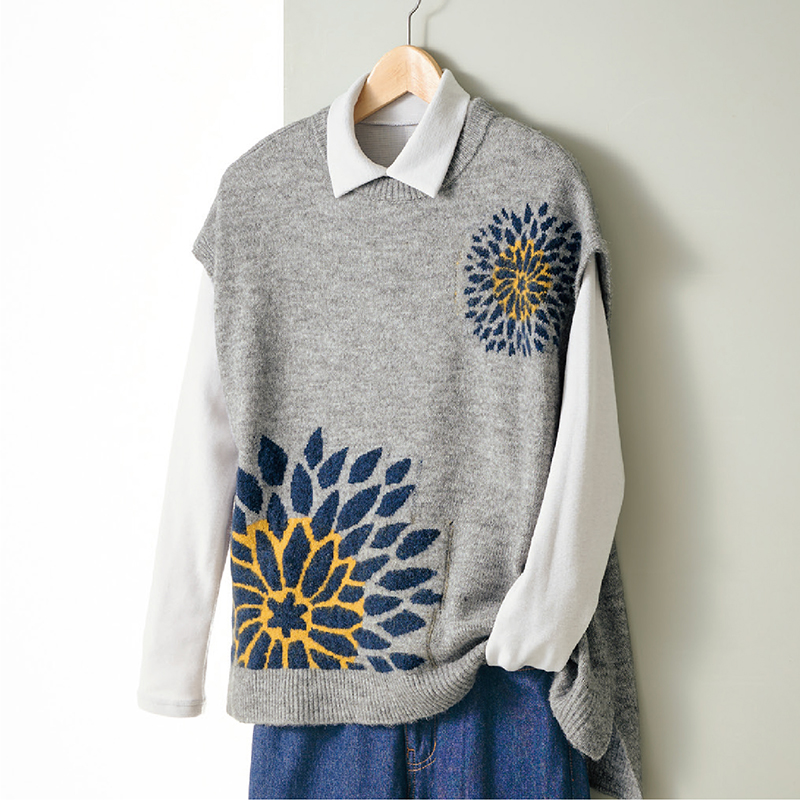 3. ダリア柄ジャカードニットベスト