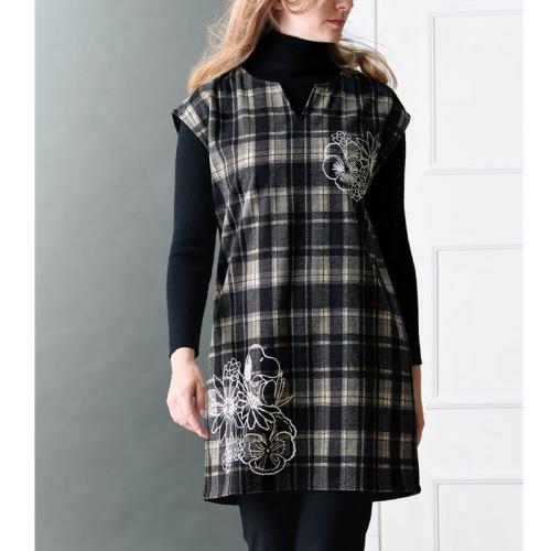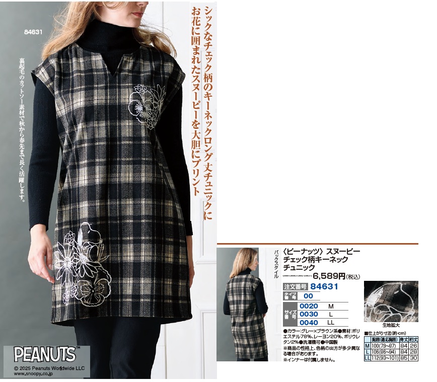 3. 〈ピーナッツ〉スヌーピーチェック柄キーネックチュニック