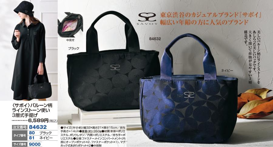 〈サボイ〉バルーン柄ラインストーン使い3層式手提げ