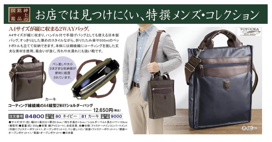 コーティング綿綾織のA4縦型2WAYショルダーバッグ