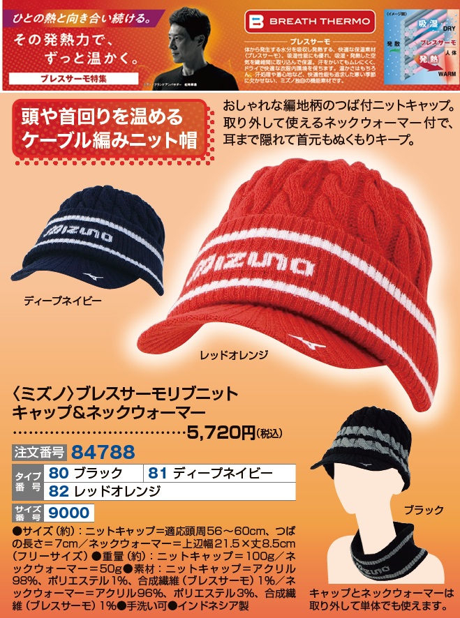 〈ミズノ〉ブレスサーモリブニットキャップ&ネックウォーマー