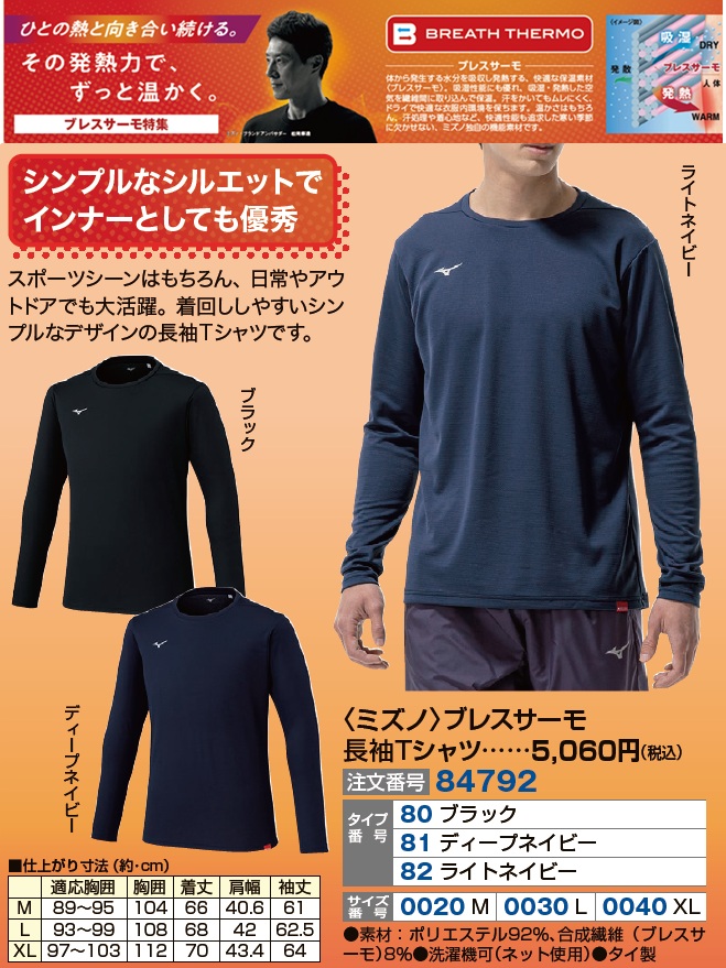〈ミズノ〉ブレスサーモ長袖Tシャツ