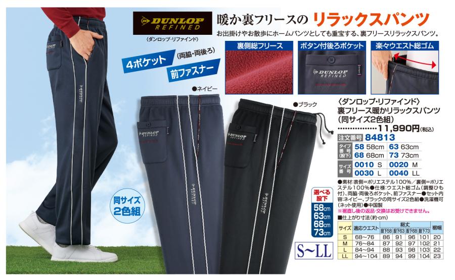 3. 〈ダンロップ・リファインド〉裏フリース暖かリラックスパンツ(同サイズ2色組)