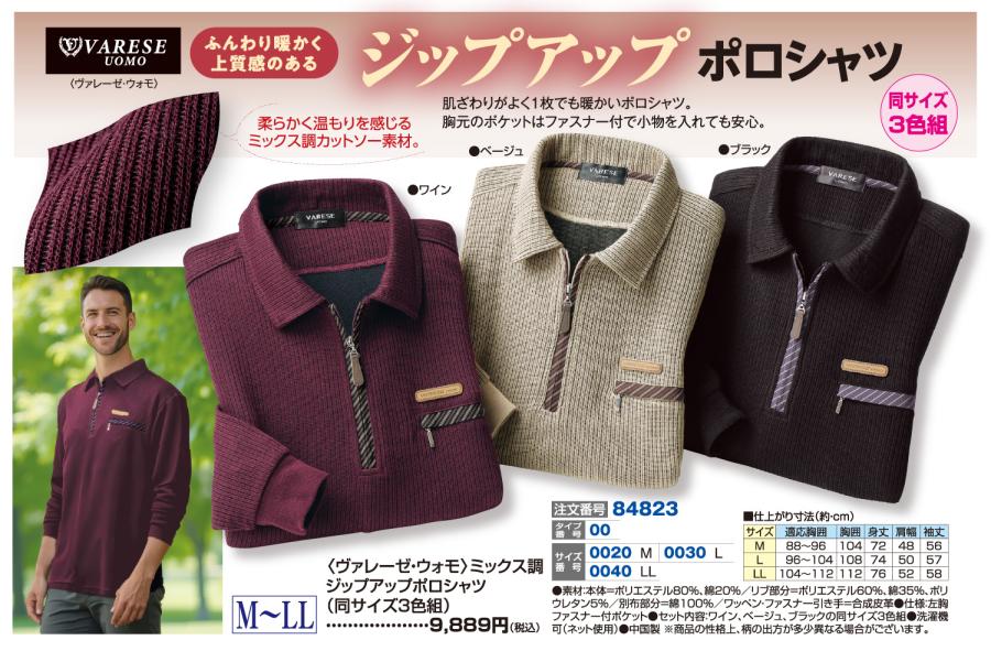3. 〈ヴァレーゼ・ウォモ〉ミックス調ジップアップポロシャツ(同サイズ3色組)