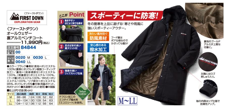 〈ファーストダウン〉オールウェザー裏アルミベンチコート