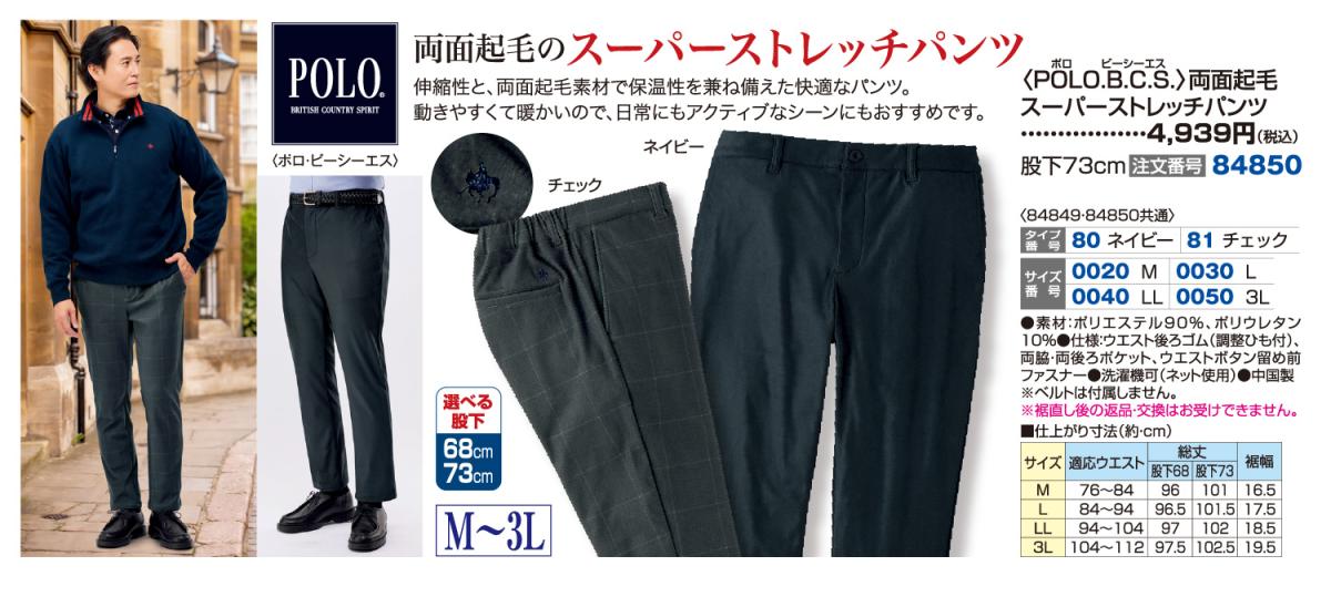 3. 股下73cm/〈POLO.B.C.S.〉両面起毛スーパーストレッチパンツ