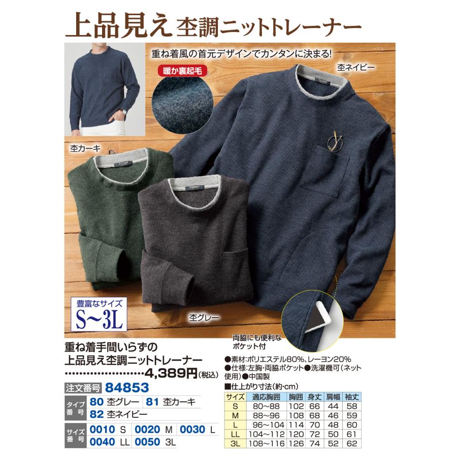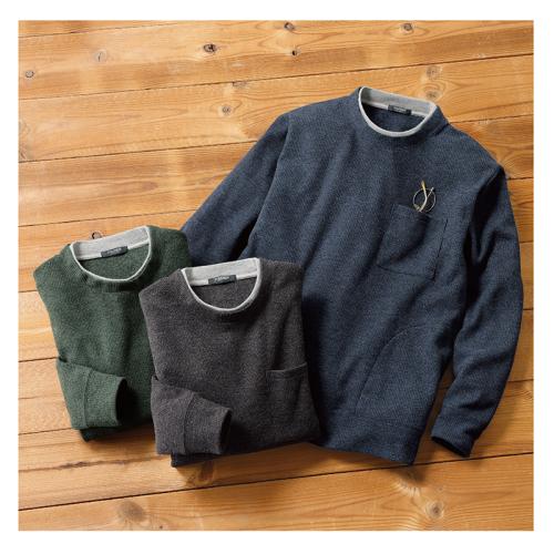 重ね着手間いらずの上品見え杢調ニットトレーナー
