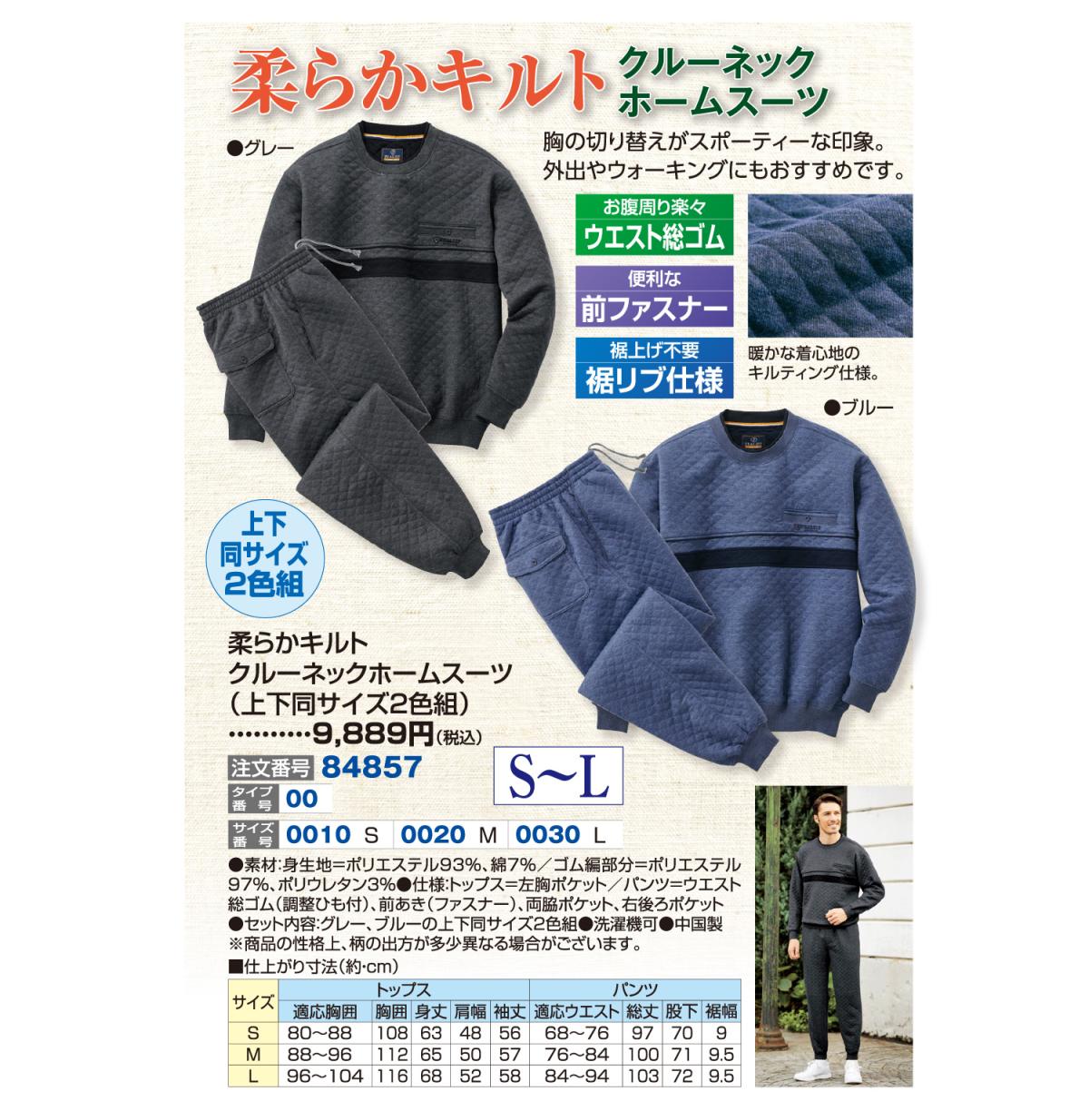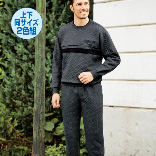 柔らかキルトクルーネックホームスーツ(上下同サイズ2色組)