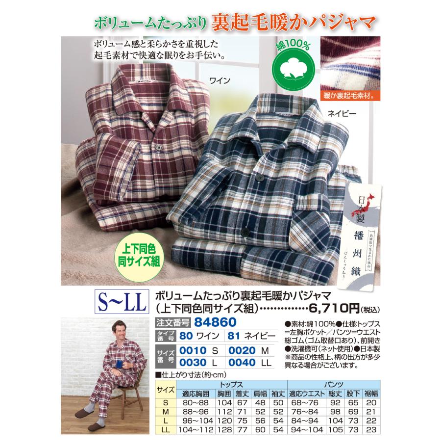 ボリュームたっぷり裏起毛暖かパジャマ(上下同色同サイズ組)
