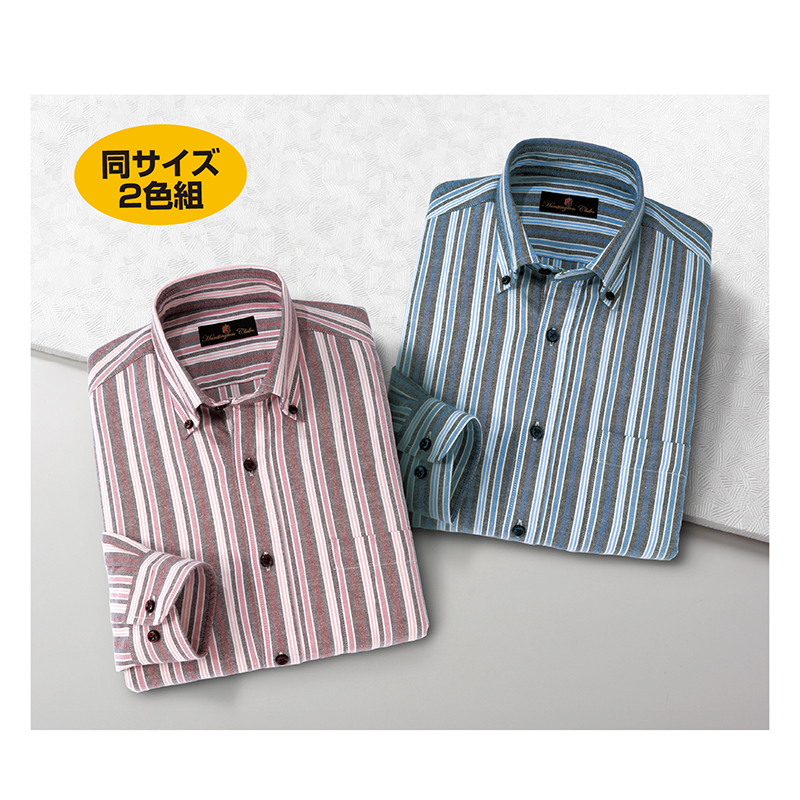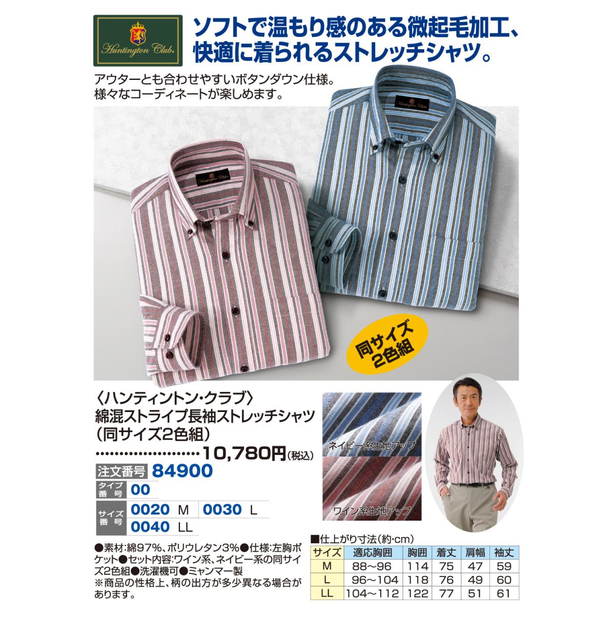 〈ハンティントン・クラブ〉綿混ストライプ長袖ストレッチシャツ(同サイズ2色組)