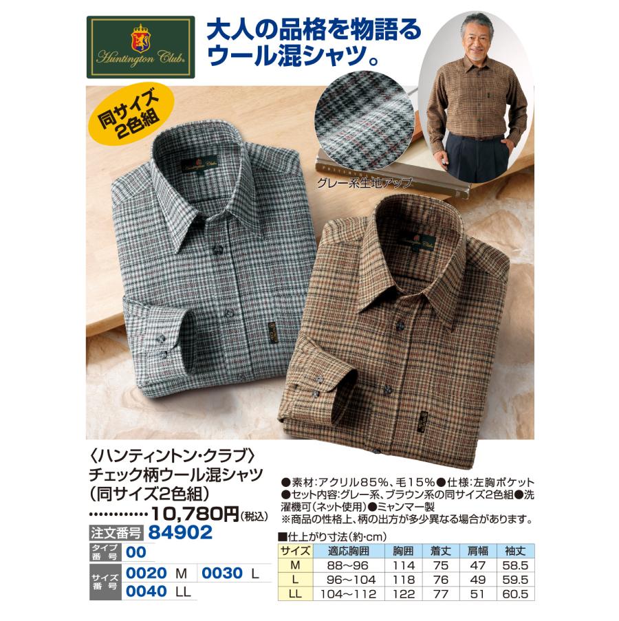 〈ハンティントン・クラブ〉チェック柄ウール混シャツ(同サイズ2色組)