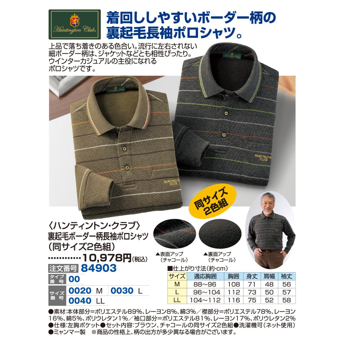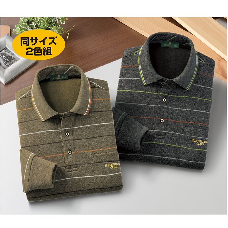 〈ハンティントン・クラブ〉裏起毛ボーダー柄長袖ポロシャツ(同サイズ2色組)