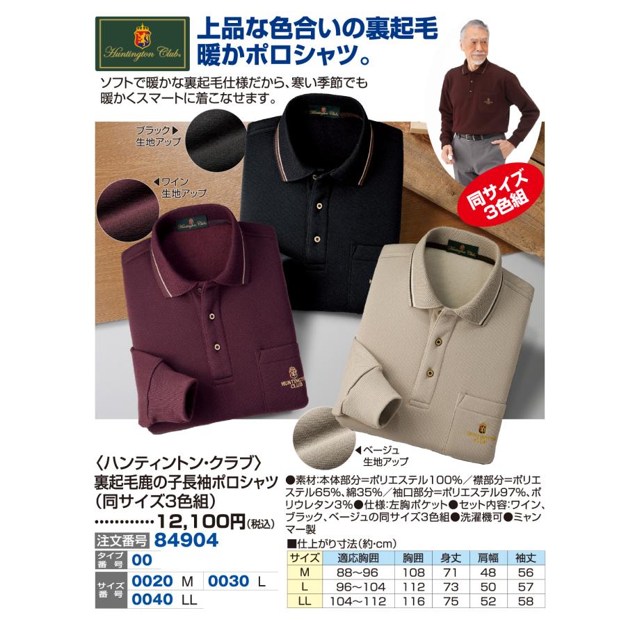 〈ハンティントン・クラブ〉裏起毛鹿の子長袖ポロシャツ(同サイズ3色組)