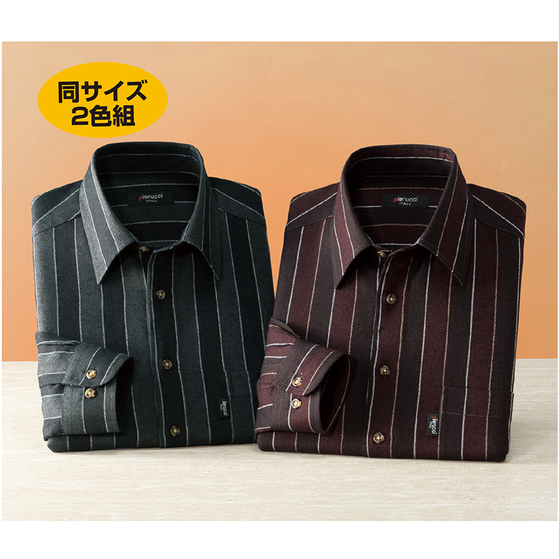 〈ピエルッチ〉ウール混ストライプ柄長袖シャツ(同サイズ2色組)