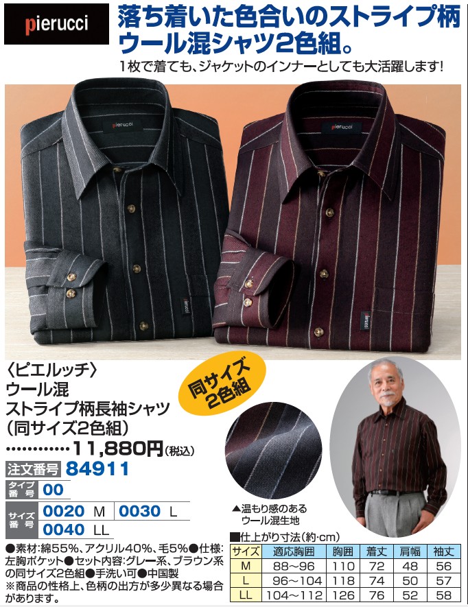 3. 〈ピエルッチ〉ウール混ストライプ柄長袖シャツ(同サイズ2色組)