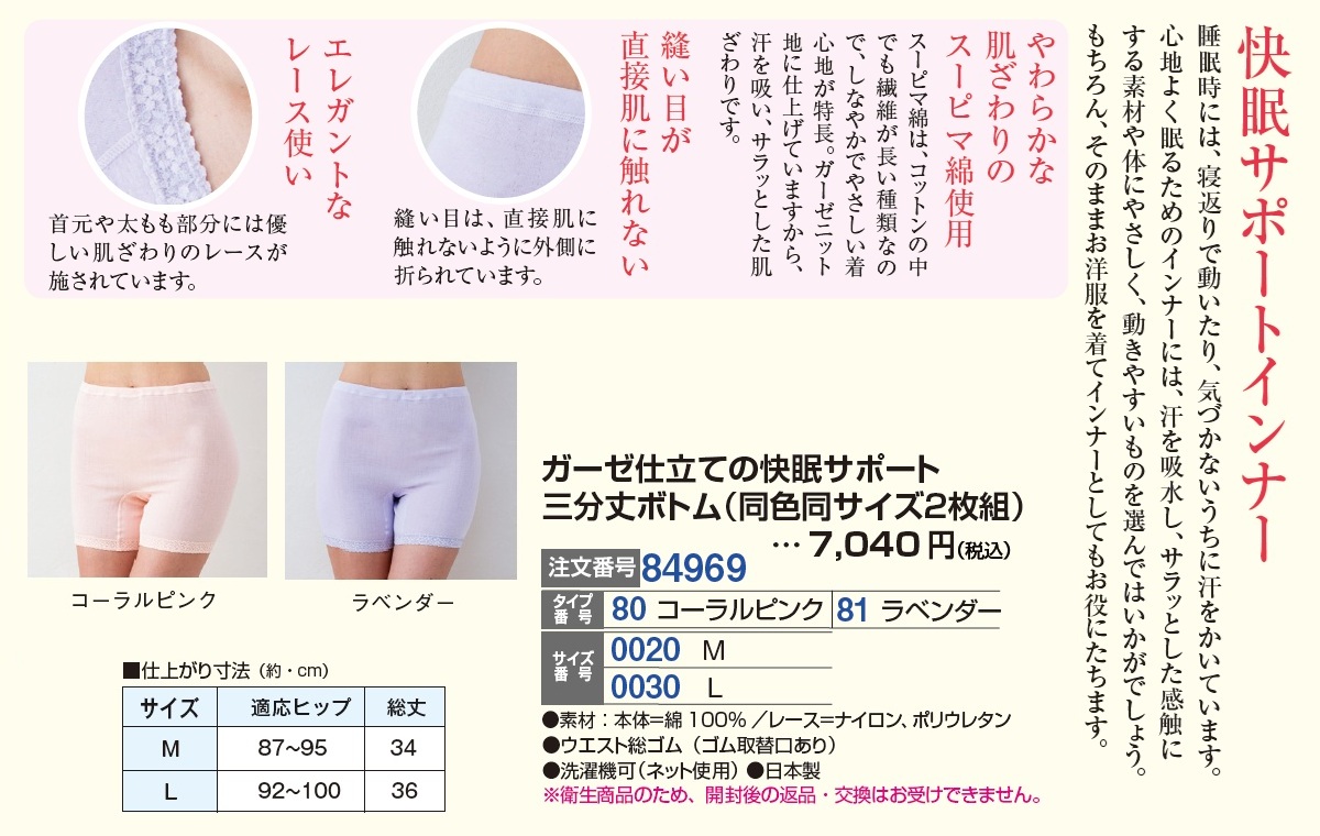 3. ガーゼ仕立ての快眠サポート三分丈ボトム(同色同サイズ2枚組)