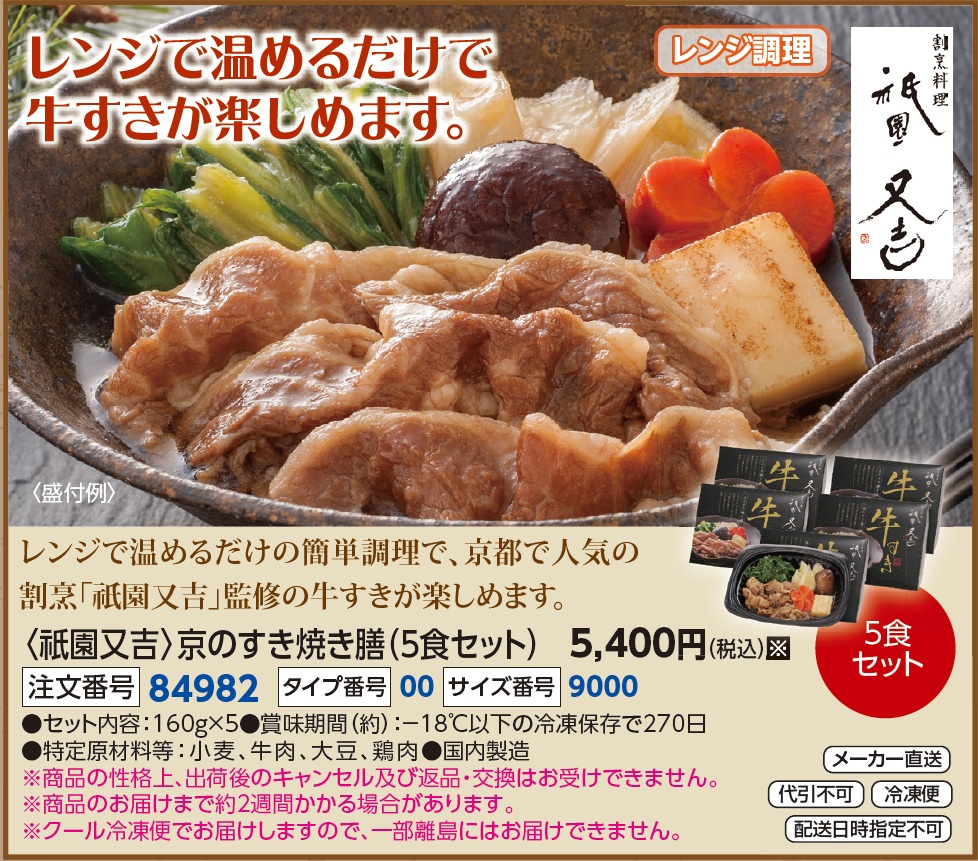 〈祇園又吉〉京のすき焼き膳(5食セット)