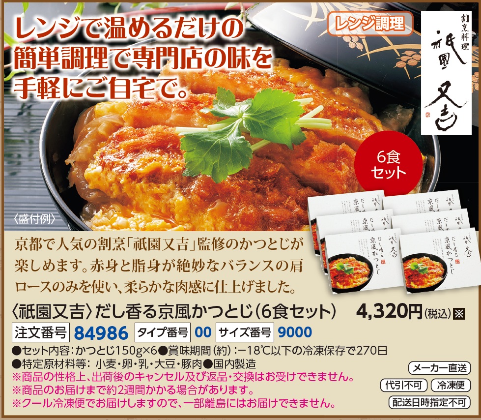3. 〈祇園又吉〉だし香る京風かつとじ(6食セット)