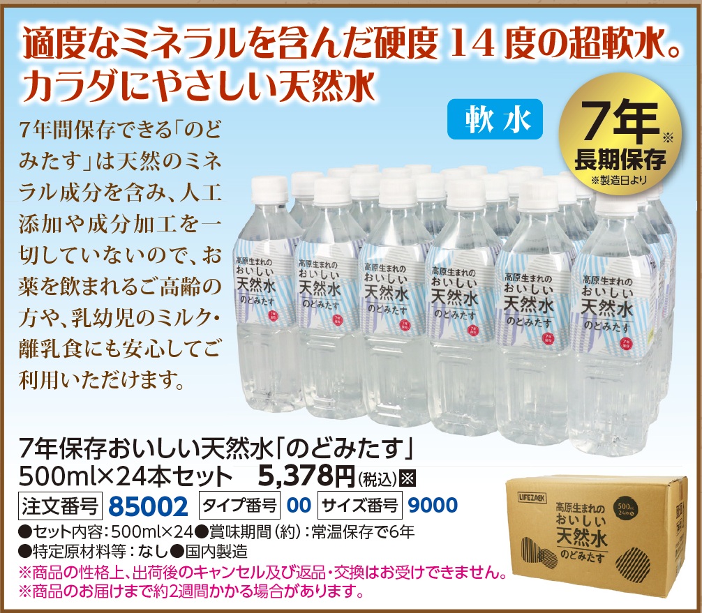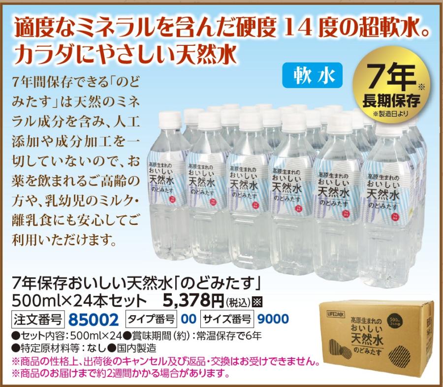 3. 7年保存おいしい天然水「のどみたす」500ml×24本セット