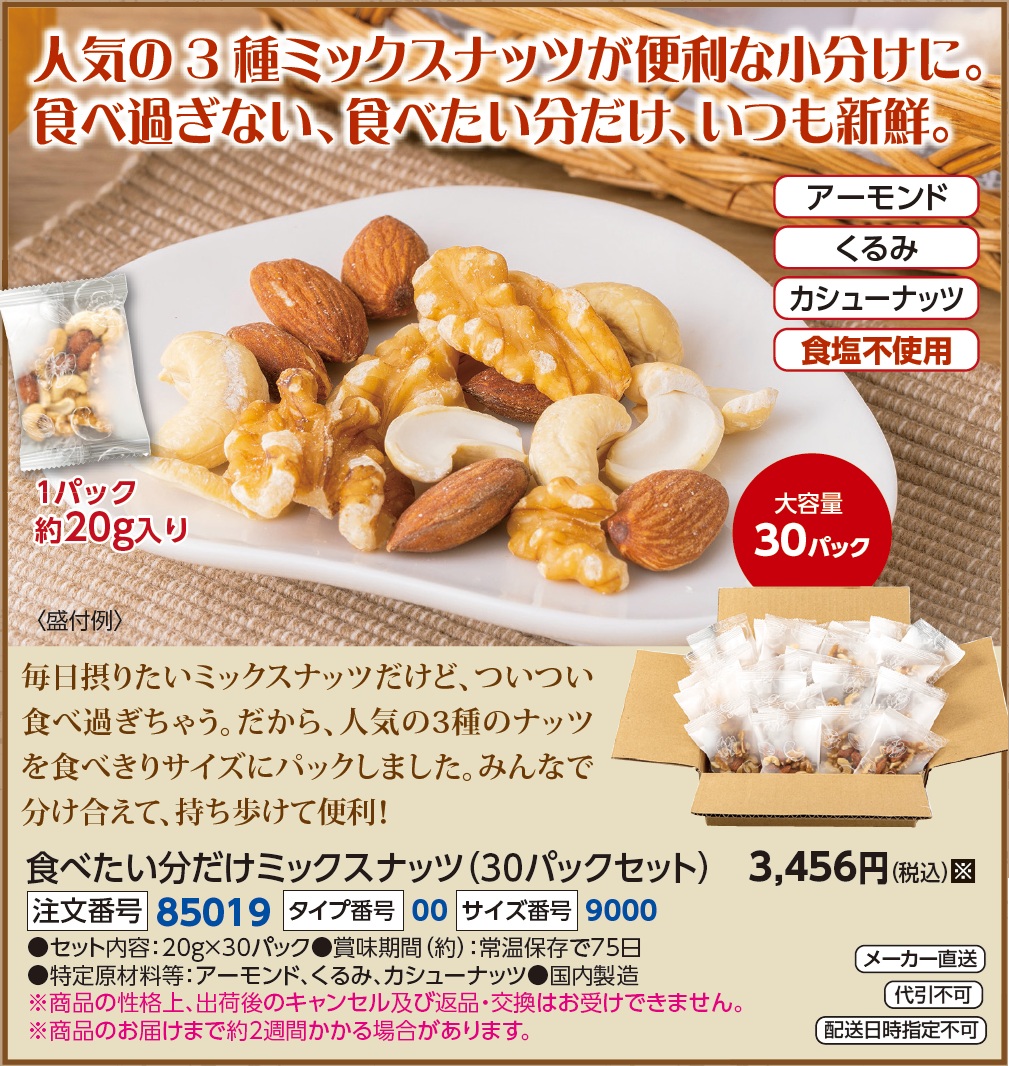 3. 食べたい分だけミックスナッツ(30パックセット)