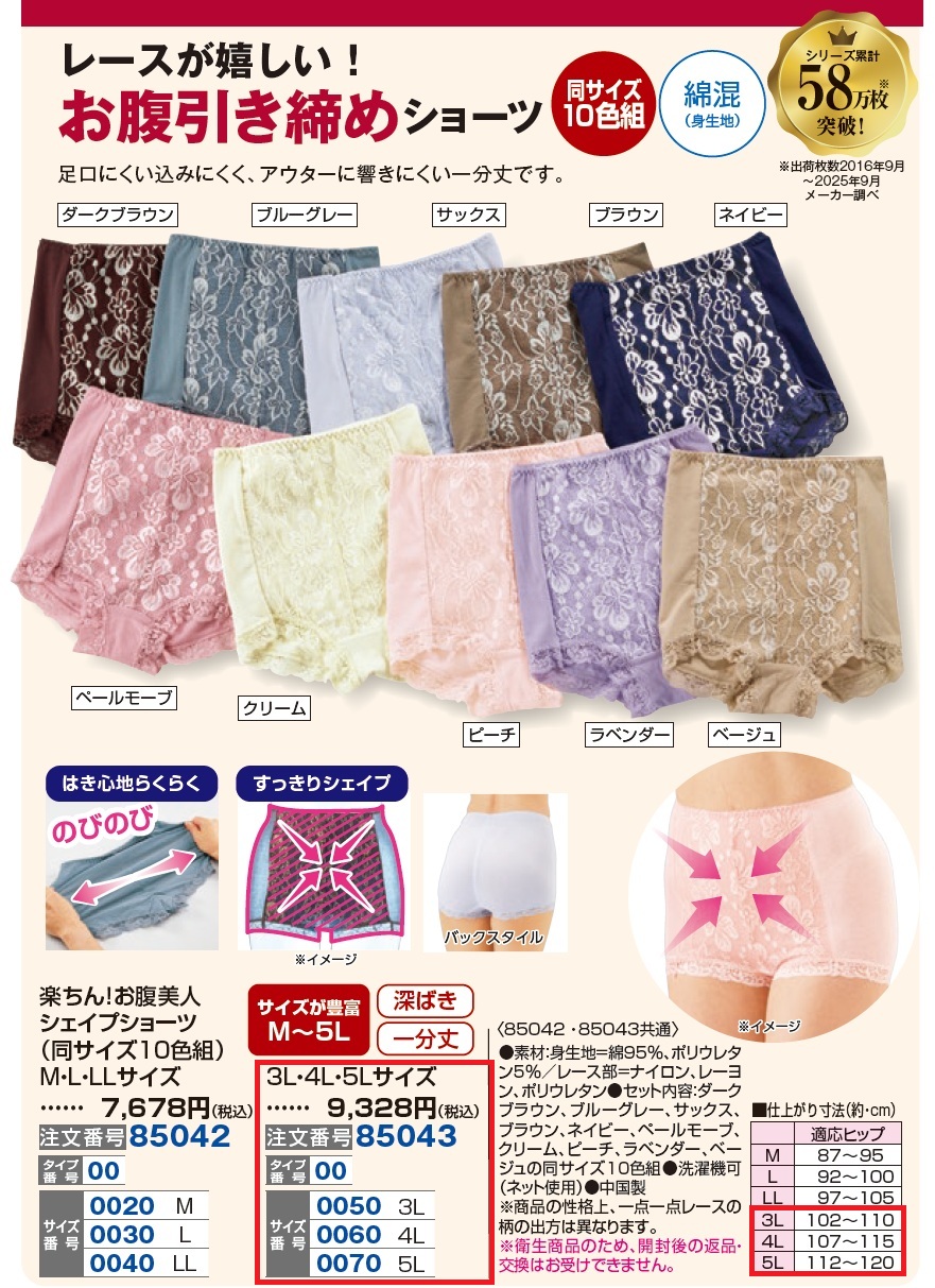 3. 3L・4L・5Lサイズ/楽ちん!お腹美人シェイプショーツ(同サイズ10色組)