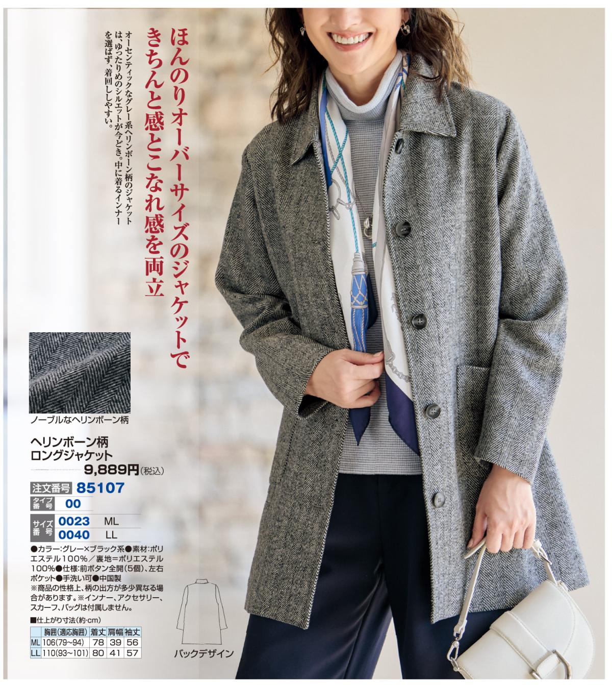 ヘリンボーン柄ロングジャケット