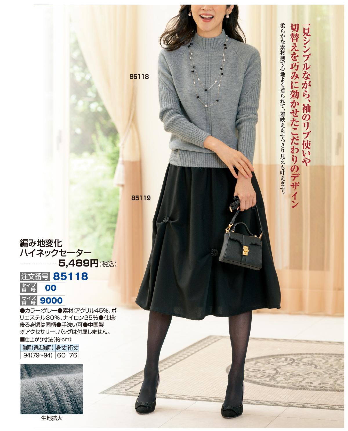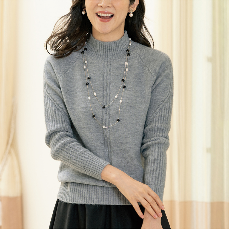 編み地変化ハイネックセーター