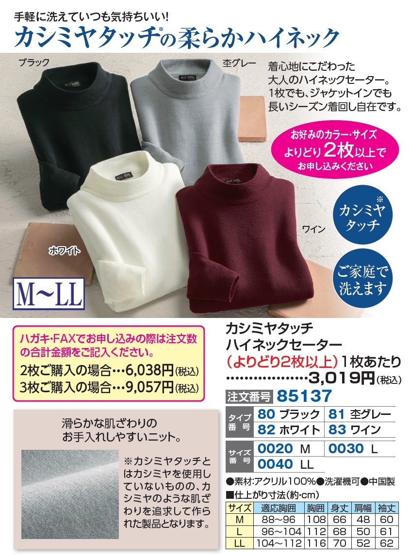 3. カシミヤタッチハイネックセーター(よりどり2枚以上)1枚あたり