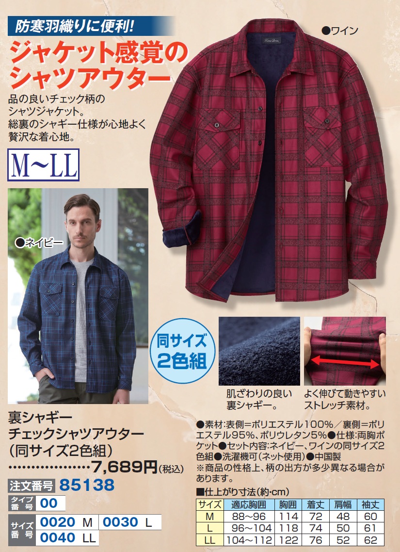 3. 裏シャギーチェックシャツアウター(同サイズ2色組)