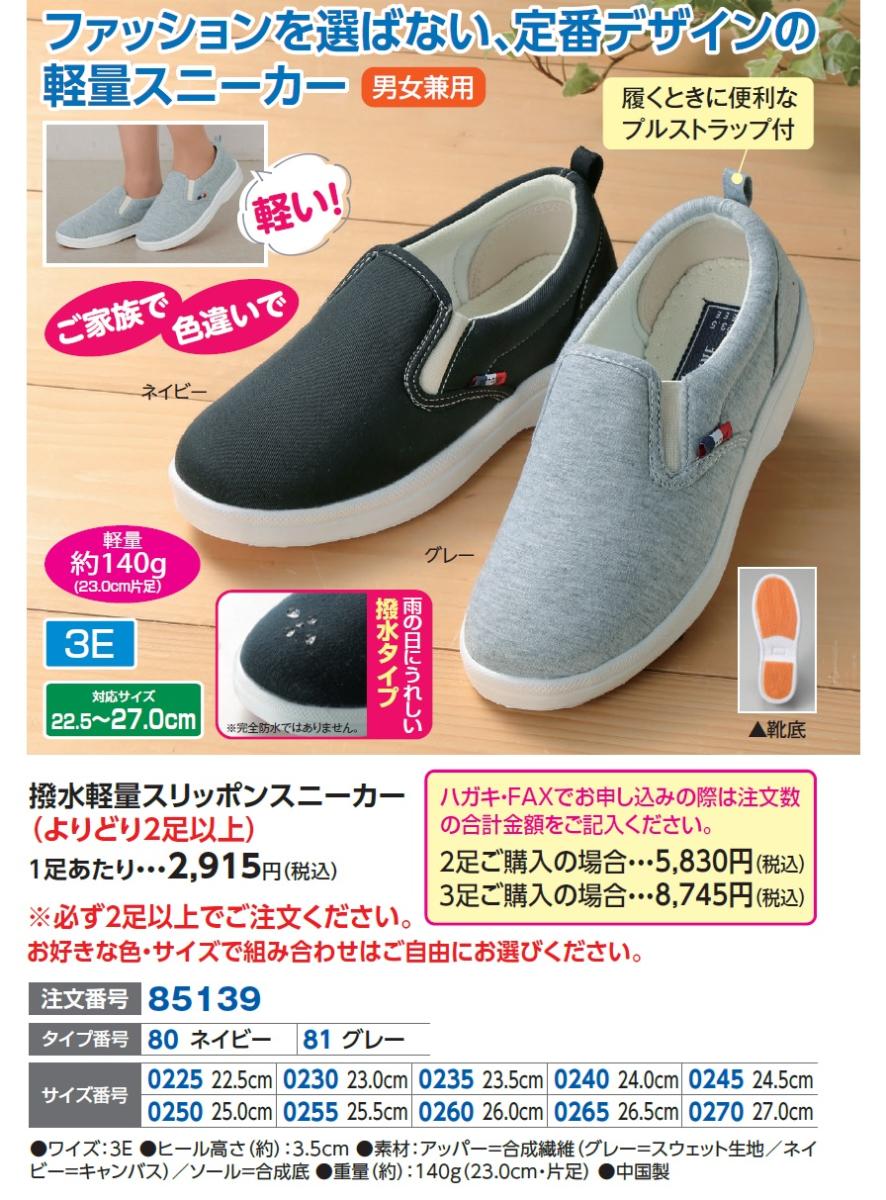撥水軽量スリッポンスニーカー(よりどり2足以上)1足あたり