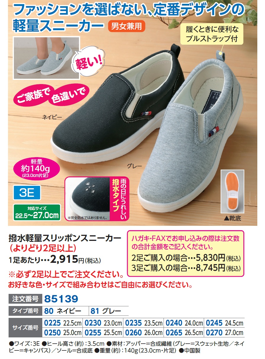3. 撥水軽量スリッポンスニーカー(よりどり2足以上)1足あたり