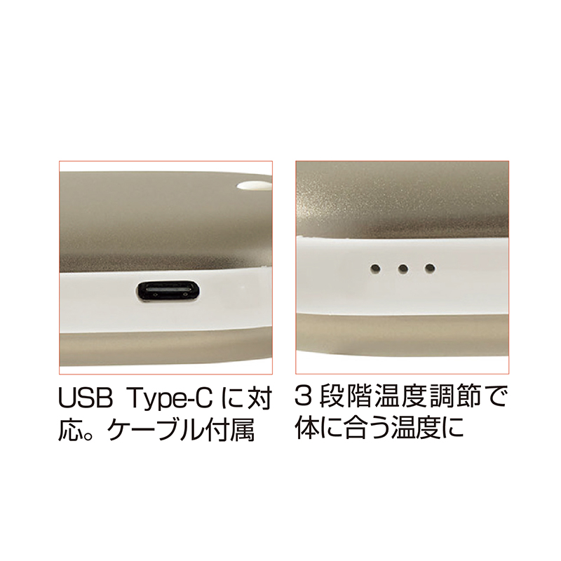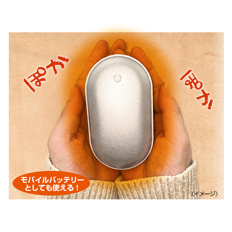 約10秒であったか!寒い日の外出に安心の一品。 瞬間発熱し、最長約9時間(約40度使用時)使える優れもの。カイロとしてだけでなく、モバイルバッテリーとしても活躍します。繰り返し使えて、環境にやさしいカイロです。 ●カラー:ベージュ ●サイズ(外寸・約):幅5.9×高さ10×厚さ2.4cm ●重量(本体・約):140g ●材質:本体=ABS樹脂、ポリカーボネート、アルミニウム合金、他 ●電源:5000mAhリチウムイオン充電池(5V 2.0A以上・USB Type-C) ●温度(約):低=40度/中=50度/高=55度 ●充電時間(約):4時間 ●連続使用可能時間(約):低=9時間/中=6時間/高=4時間 ●仕様:3段階調節(低・中・高モード) ●セット内容(約):本体、USB Type-A to USB Type-Cケーブル(約30cm)、専用ポーチ、ハンドストラップ ●中国製 ※通電後の返品・交換はお受けできません。