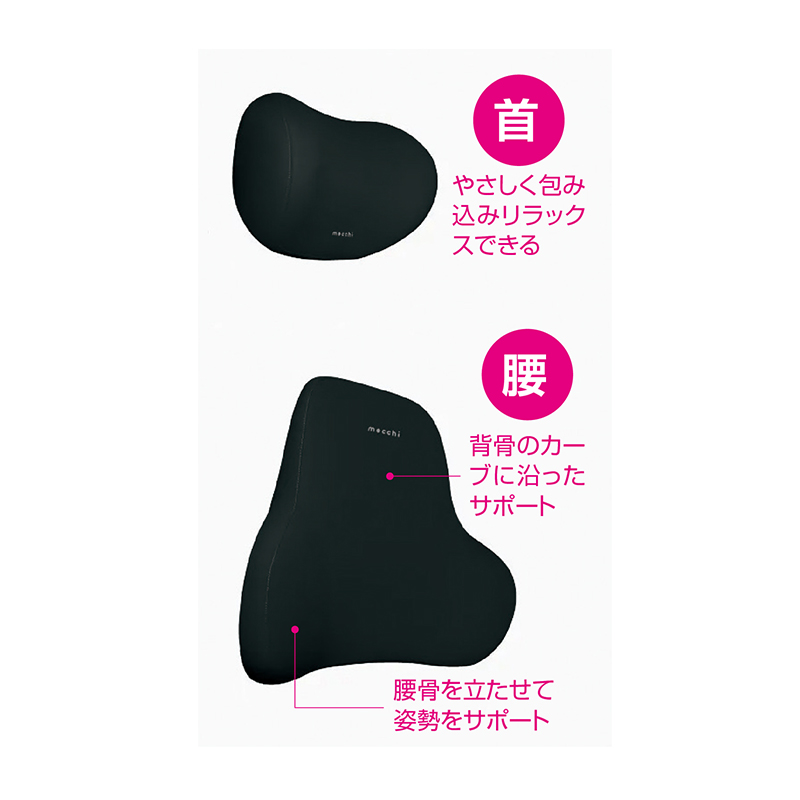 首と腰をやさしく支える快適もちもちクッション。 車内やオフィスで首と腰をやさしく支えるクッションセット。もちもち素材で雲の上を思わせる快適さを実現。ベルトはワンタッチで簡単に着脱でき、カバーも外して洗えるので、いつでも清潔に長く愛用できます。 ●カラー:ブラック ●サイズ(約):ネッククッション=縦20×横28×厚さ12cm/ランバーサポート=縦35×横45×奥行6.5cm ●重量(約):ネッククッション=350g/ランバーサポート=700g ●材質:中材=ウレタン/カバー=ポリエステル100% ●カバーのみ手洗い可 ●中国製