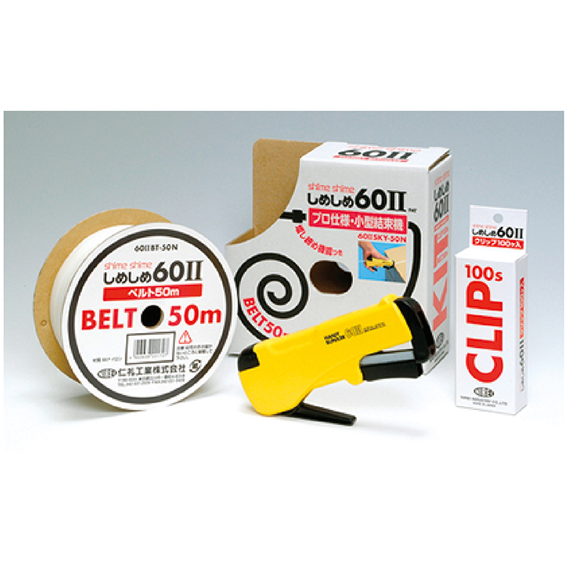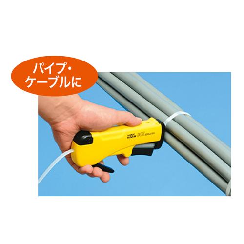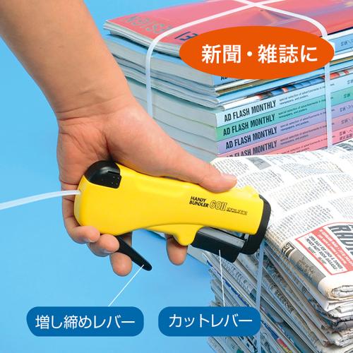力要らず! どんなサイズも簡単に結束。 片手で簡単に、力も要らずにしっかり結束できる小型結束機です。引き締める強さは増し締めレバーで調節可能。新聞や雑誌、ダンボールをまとめたり、荷物を結束したり、パイプやケーブル類を固定したりと使い方はアイデア次第。一台常備しておくと、とても重宝します。 ●セット内容:本体×1、替刃×1、ベルト(50m巻)×1、クリップ(100個入り)×1 ●サイズ(約):本体=縦8.5×横17×厚さ2.5cm ●総重量(約):730g ●材質:本体=ABS樹脂/ベルト・クリップ=66ナイロン ●引っ張り破断強度(約):40kg ●日本製 ※ご使用後の返品・交換はお受けできません。