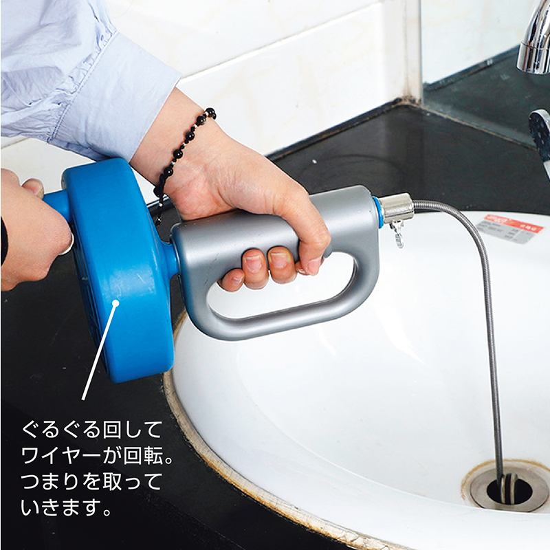 流れが悪い、臭いが気になる、そんな排水パイプに! 流れが悪くなったり悪臭の原因は、排水パイプ内に徐々に蓄積した汚れ。柔軟で高強度のワイヤーがパイプに沿って曲がりながら奥まで進入し、ヘドロや毛髪などの汚れを絡め取ります。 ●サイズ(外寸・約):幅15×奥行15×高さ36cm ●重量(約):724g ●ワイヤー長さ(約):4.5m ●材質:ポリエチレン、マンガン鋼 ●中国製 ※ワイヤーの出し入れの際、ワイヤーを直接手でつかむため、作業時は手袋をご着用ください。 ※ご使用後の返品・交換はお受けできません。