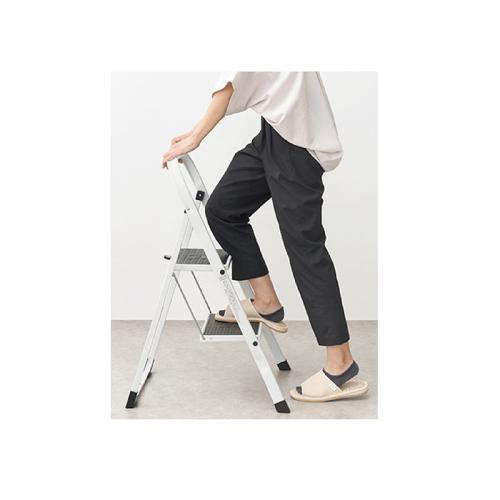 ノンスリップマット付、安心して使える工夫がうれしい。 表面は滑りにくく、高所作業がラクに。アーチは手すりになり、最上段に乗る際にはひざ下を支えます。 ●サイズ(外寸・約):使用時=幅47.5×奥行55×高さ83(2段目までの高さ47)cm/折りたたみ時=幅47.5×奥行5×高さ90cm ●重量(約):4.7kg ●耐荷重(約):100kg ●材質:本体=スチール(パウダーコーティング)/ステップマット・足元キャップ=ポリプロピレン ●ウクライナ製 ※お届けまで約2週間かかる場合があります。