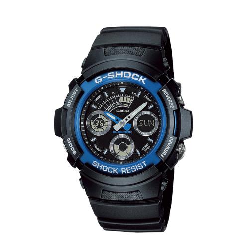 タフさとスマートさ、デジタルとアナログを併せ持つ。 ブラックのボディーに映えるブルーのメタルベゼル。落下時の衝撃を逃すボタン構造など独自の耐衝撃構造とデジアナの機能性をスマートなデザインに仕上げました。 ●カラー:ブラック×ブルー ●サイズ(約):縦52×横46.4×厚さ14.9mm/適応手首周り=14.5~20.5cm ●重量(約):49.8g ●材質:ケース・ベゼル=樹脂、アルミ/ベルト=樹脂/風防=無機ガラス(ネオブライト) ●仕様:日本製クォーツムーブメント、平均月差±15秒、耐衝撃構造、20気圧防水、ワールドタイム(世界27都市)、ストップウォッチ、アラーム、タイマー、フルオートカレンダー、LEDライト ●留め具:尾錠式 ●タイまたは中国製