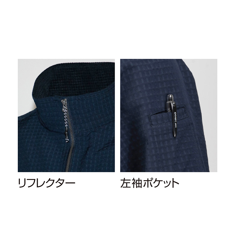 ストレッチ素材の動きやすさ、ブロック構造の暖かさ。 寒い季節にもスマートな着こなし。ブロック構造の裏面が体温をしっかりとキープします。秋から春まで3シーズン活躍します。 ●重量(約):350g(L) ●素材:本体=ポリエステル92%、ポリウレタン8%/袖口・内側襟=ポリエステル95%、ポリウレタン5% ●仕様:両脇ポケット、左袖ペン差しポケット×1 ●洗濯機可 ●中国製